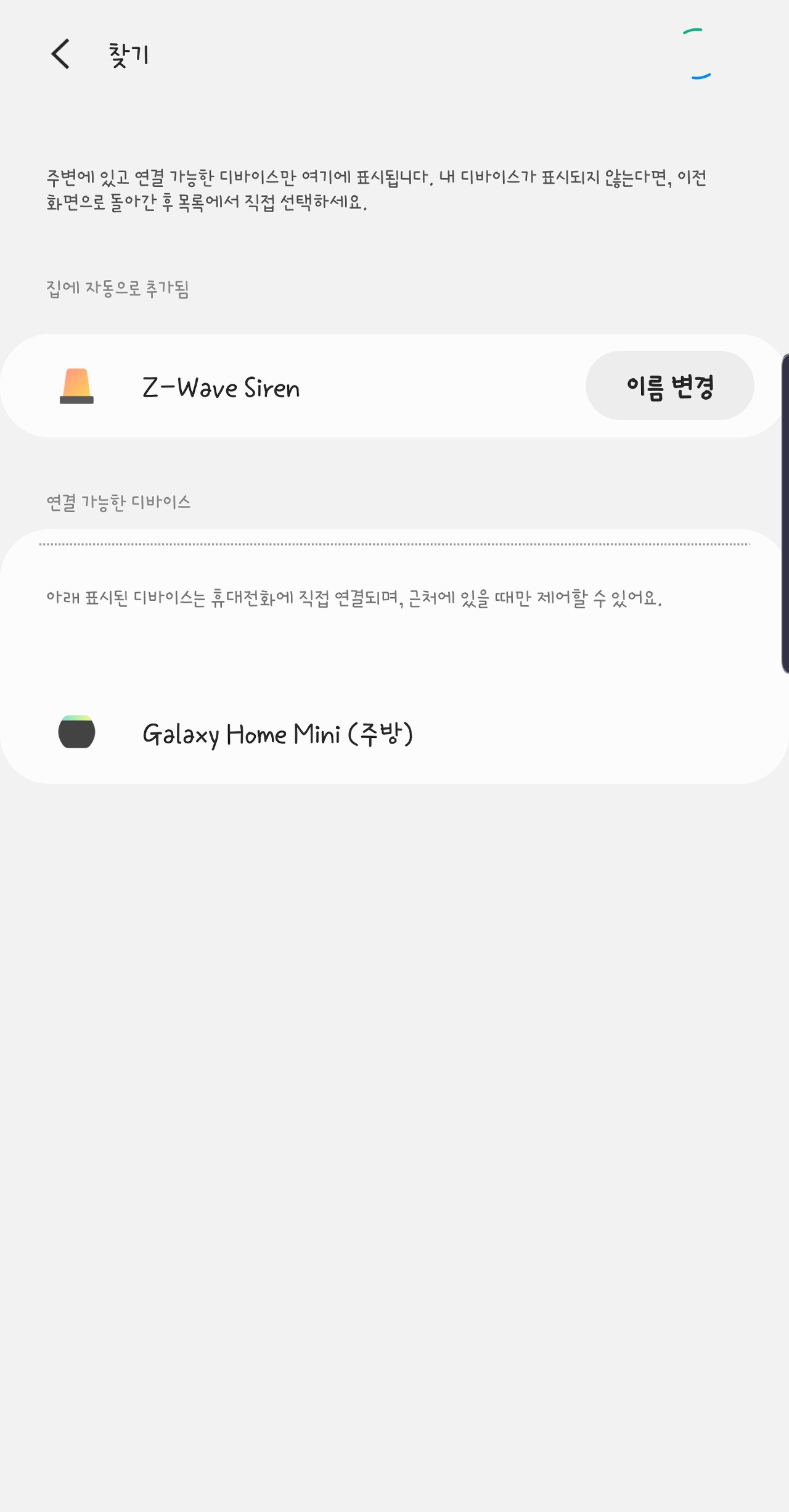 ㄴ. Smarthings허브에서 디바이스 찾기를 통해 등록 절차를 실행합니다.