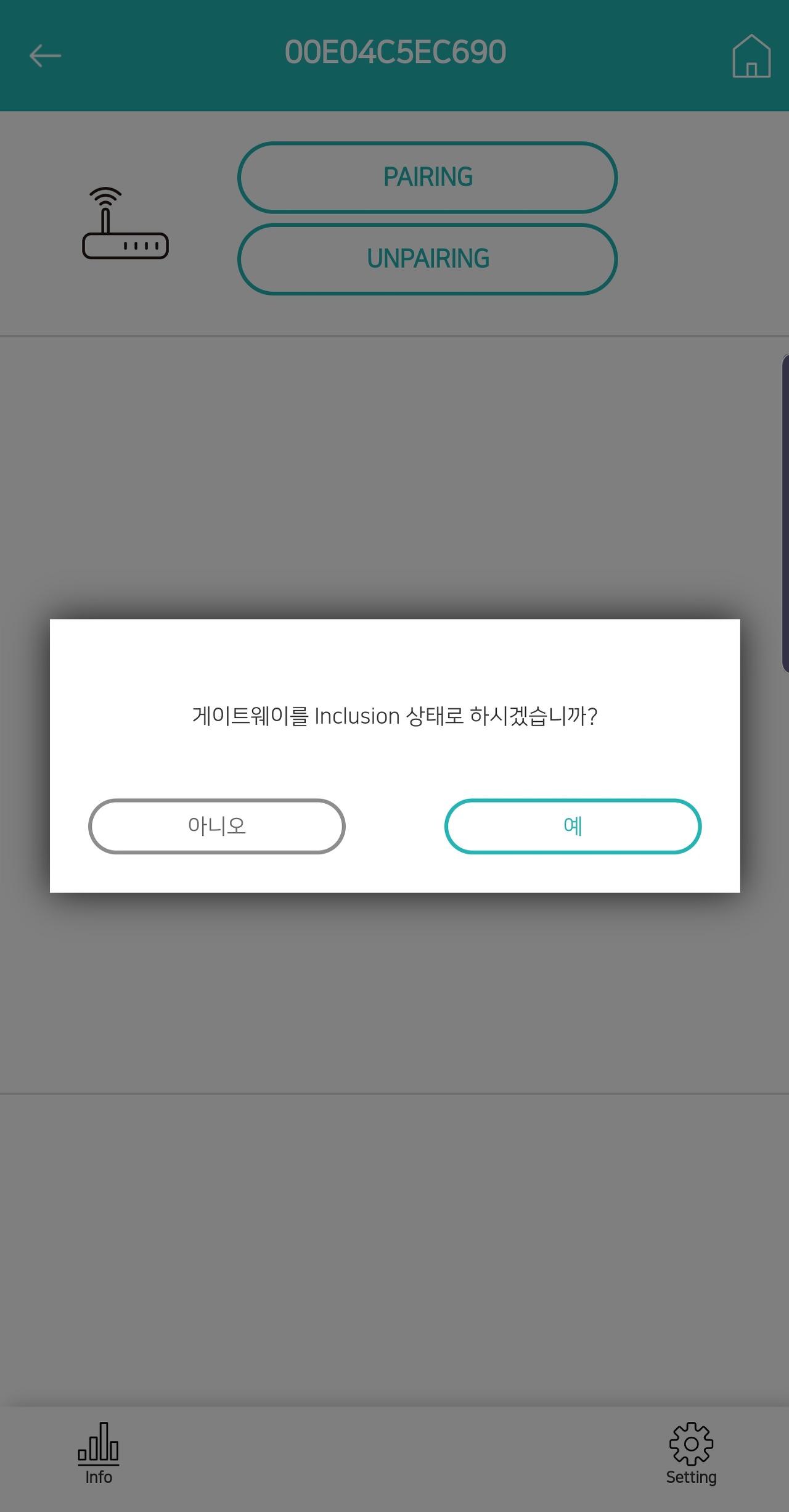 ㄱ. 진짜 디바이스를 등록하는 방법은 이렇습니다. aipm앱에서 허브를 선택후 아래와 같은 화면이 나오면 페어링 버튼을 누릅니다.