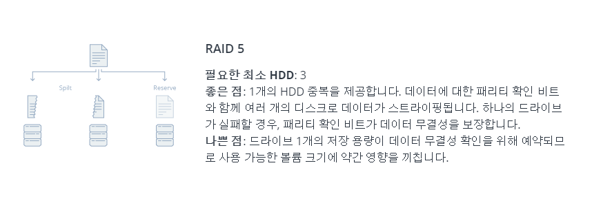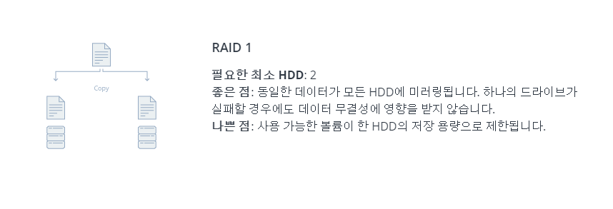 이 RAID유형에 대해 HDD가 충분치 않음. 더 많은 HDD를 끌어옵니다