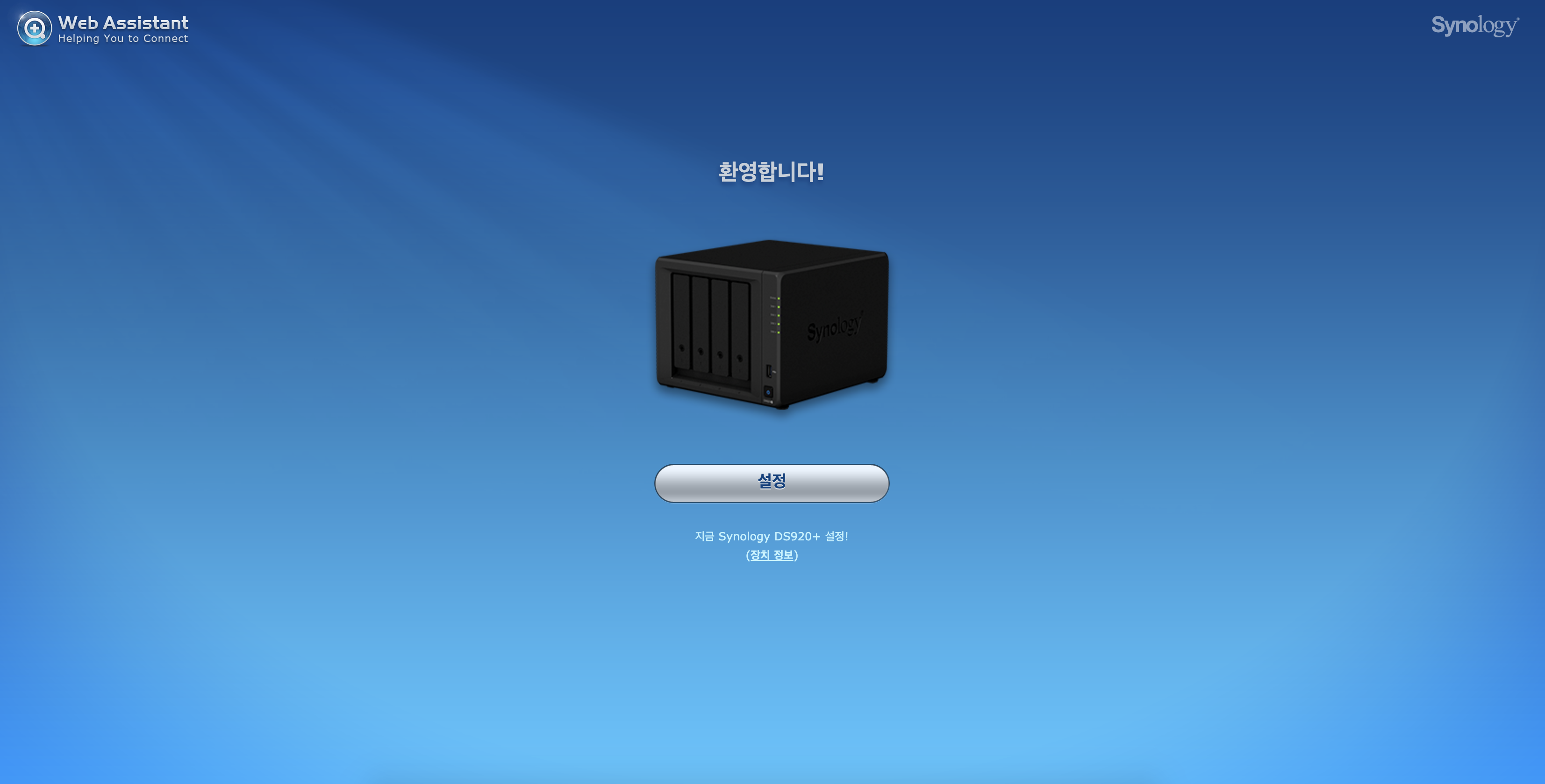 그래도 설치 조금 짚고 넘어가봅니다. NAS 네트웍에 연결 후 http://find.synology.com 으로 접속하시면 위와 같이 환영 메세지를 만나실 수 있습니다. 물론 같은 네트웍 대역이어야 합니다. 쉽죠?