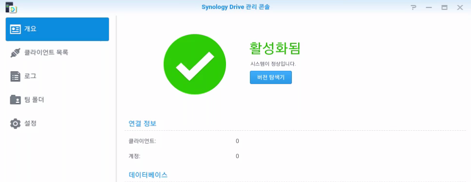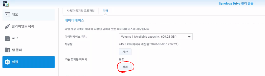 혹시 휴지통이 비워지지 않은건가? 하고 비워봐도 똑같죠. 이 경우 DSM 에서 오른쪽 시작 버튼을 눌러 Drive 관리 콘솔로 들어갑니다.