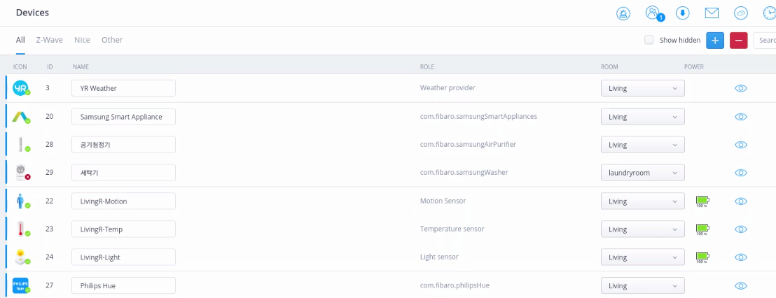디바이스를 더하는 방법은 따로 포스팅을 해보도록 하겠습니다. 살짝 맛배기로 말씀드리자면 필립스 휴 제품이나 삼성 제품을 계정연동 클라우드 방식으로 가져올 수 있습니다. 현재 Zigbee는 활성화 되어 있지 않습니다. 하반기 open 예정이라고 하네요. 그래서 대부분 zigbee스틱을 이용하여 MQTT(?) 방식으로 연동하여 사용하신다고 하네요. 아직 해보진 않았습니다. Z-wave 같은 경우는 유럽 주파수만 지원하고 있는것 같네요.