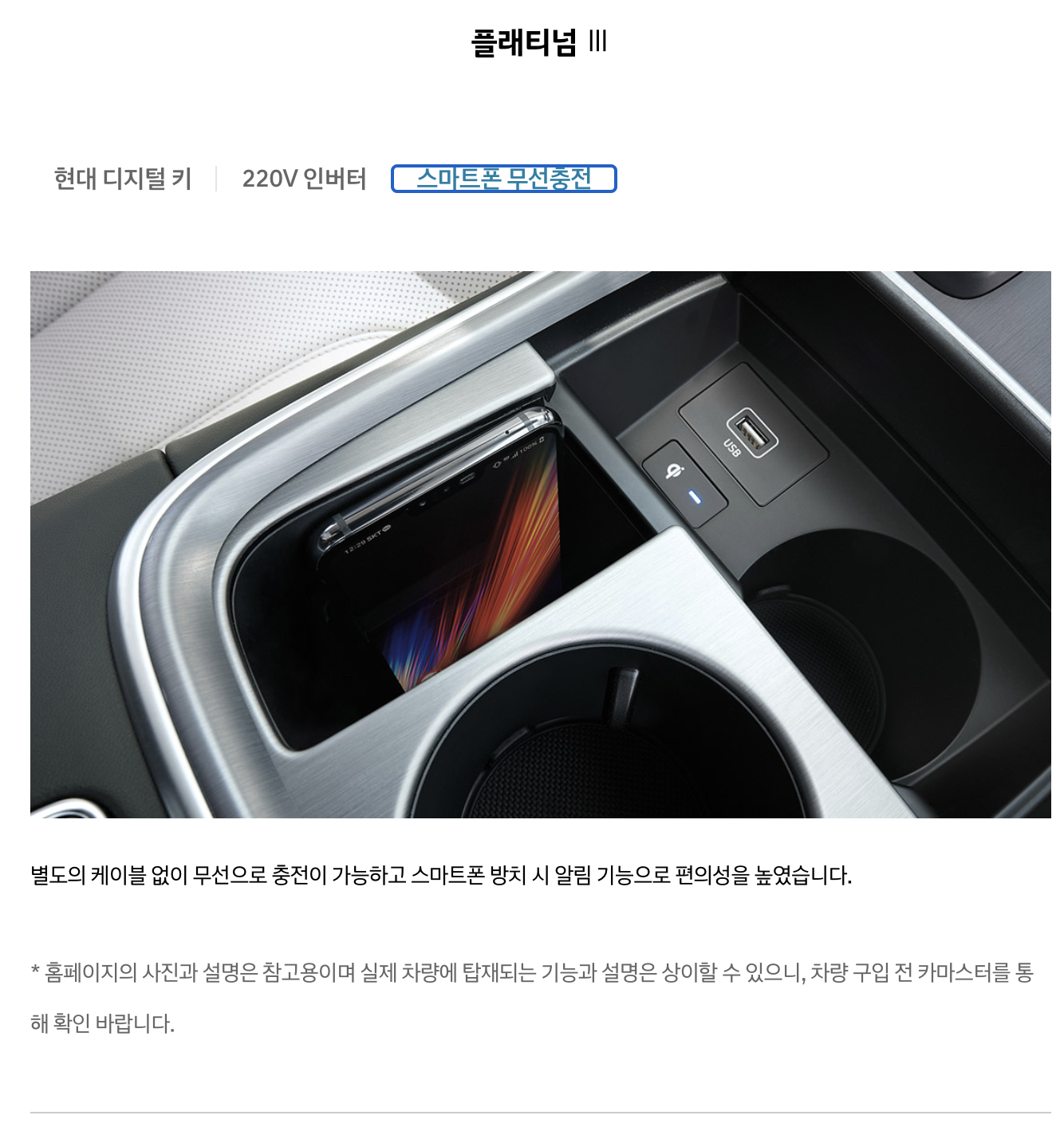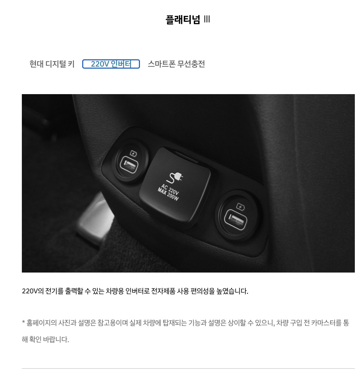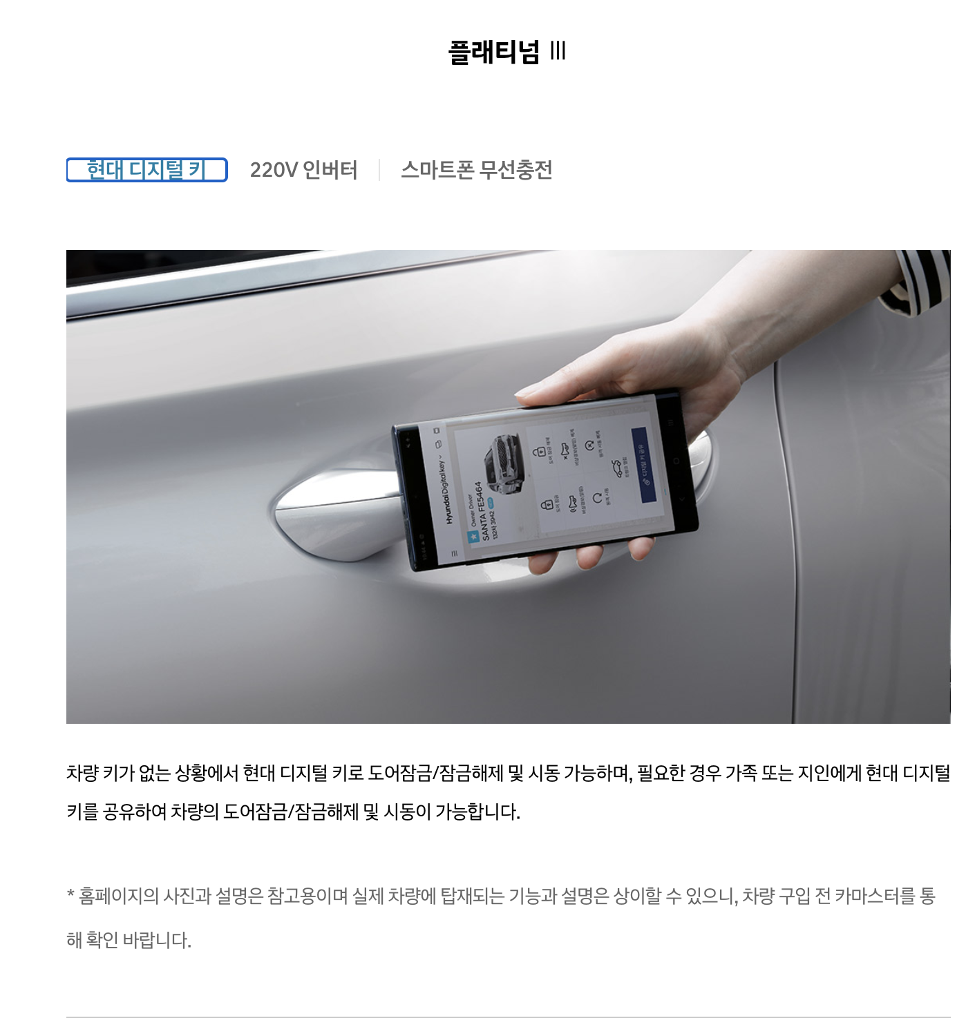 현대 디지털키 옵션이 생각보다 굉장히 평이 좋더군요. 그리고 블루링크 처럼 일정 기간 이후 유료이지도 않습니다. 44만원에 평생 키 없이 차량을 열 수 있다면 이것은 꼭 해야되는 옵션이기 때문에 넣었습니다. 그리고 220V인버터는 솔직히 쓸일 없어 보이긴 하지만 풀옵 차량에 또 무선충전 안된다면 이것도 아이러니 한 것 같아서 넣었습니다. 어짜피 무선충전 거치대는 따로 장착을 할 것 같기는 하지만요.