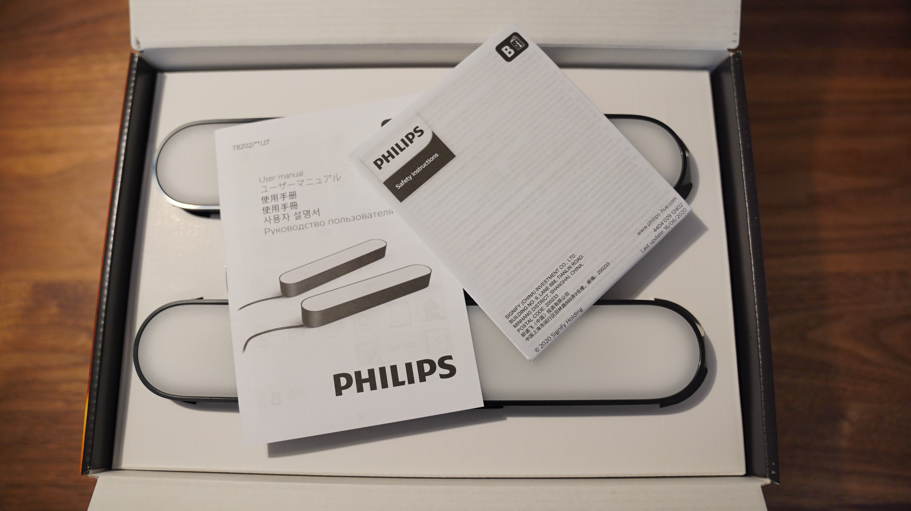 패키지를 열면 설명서와 휴 플레이 바 2개가 위치되어 있습니다.