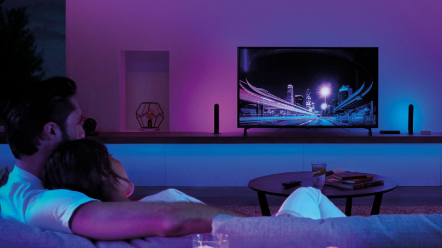 휴 플레이는 1600만 가지 컬러 지원. TV의 영상과 소리의 변화를 섬세하게 캐치하여 빛으로 표현하는 제품으로