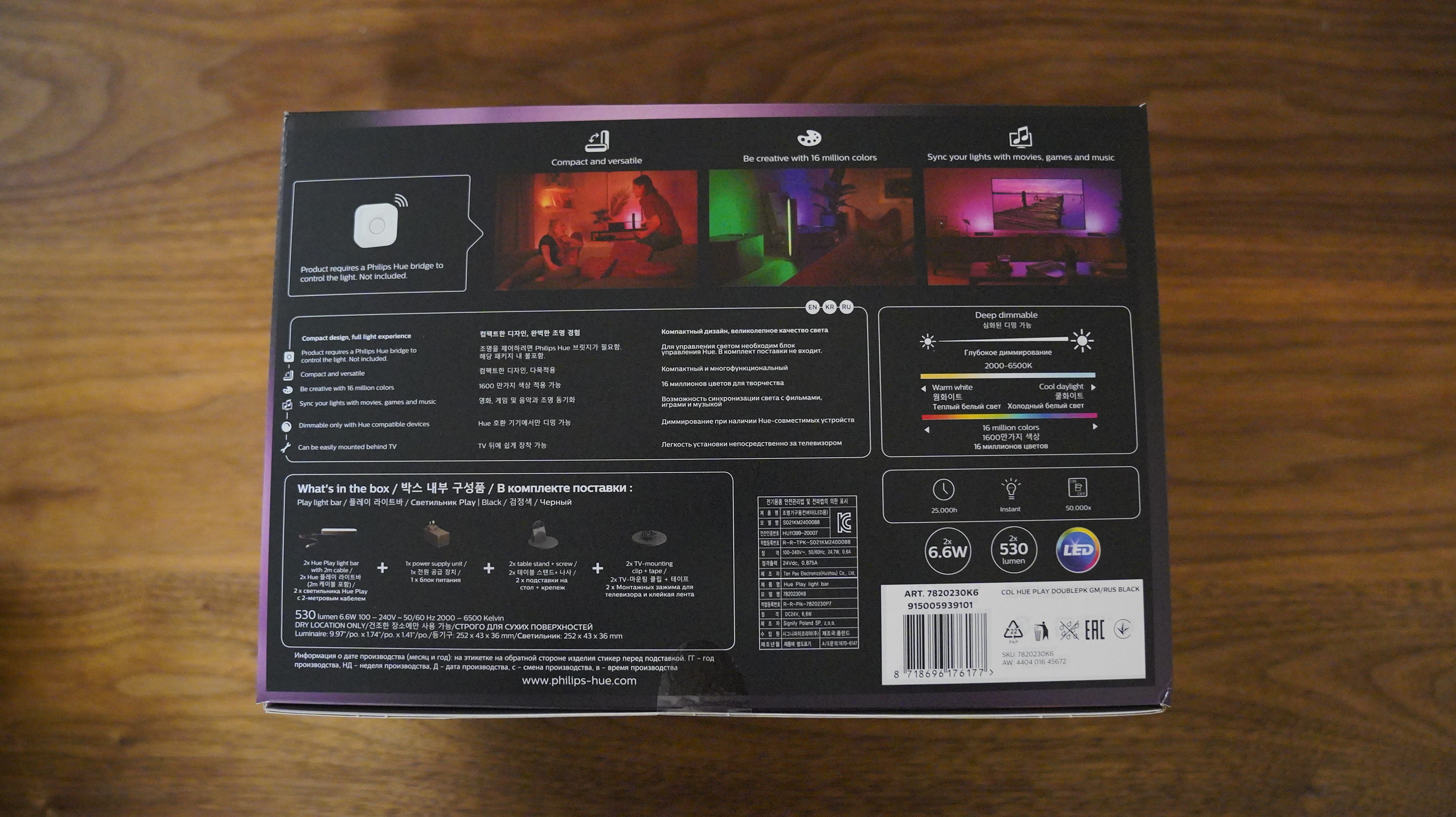 개인적으로 패키지의 재질과 디자인도 자세히 보는 편입니다. 패키지만 봐도 제품에 대한 컨셉이나 철학을 느낄 수 있기 때문인데요. 필립스 휴 제품의 패키지는 무광의 매트한 느낌의 재질에 고급스러운 블랙의 베이스로 색상 자체도 매우 신경을 쓴 느낌입니다.