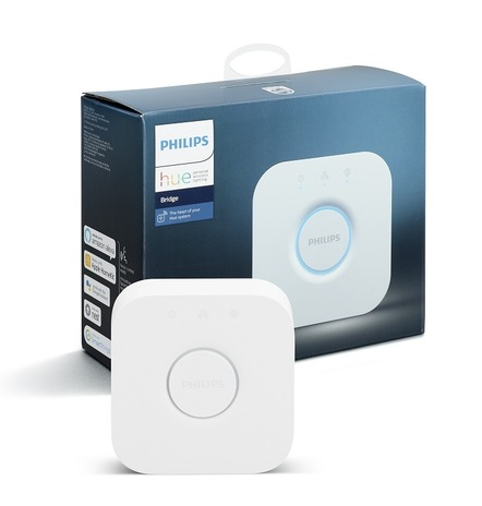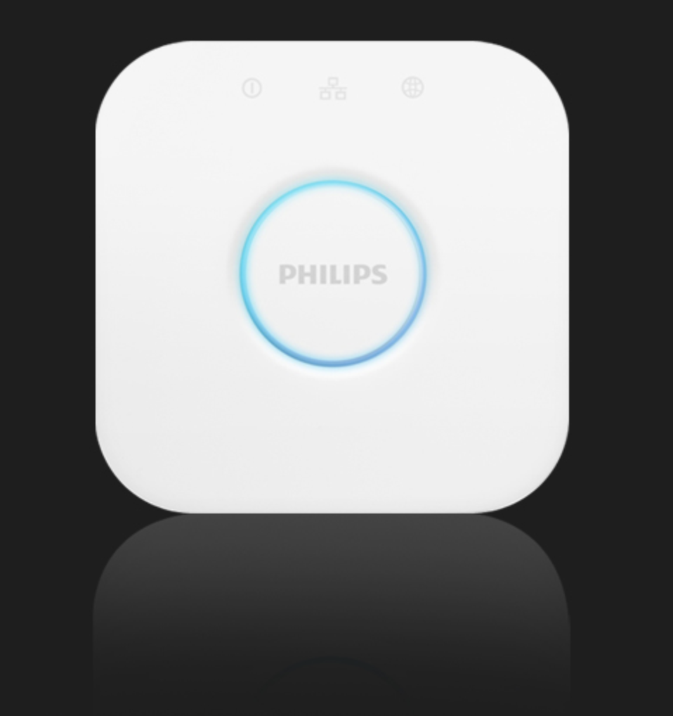 첫 번째 제품 소개는 필립스 휴 브릿지 입니다. 이 제품을 쉽게 설명하자면 인터넷 공유기는 인터넷, 와이파이를 사용할 수 있게 인터넷과 디바이스(PC, 휴대폰, 태블릿)들을 중계해 주는 역할을 하는 기기잖아요? '휴 브릿지' 도 필립스 휴의 제품들의 공유기 역할을 해 주는 제품입니다. (아래)