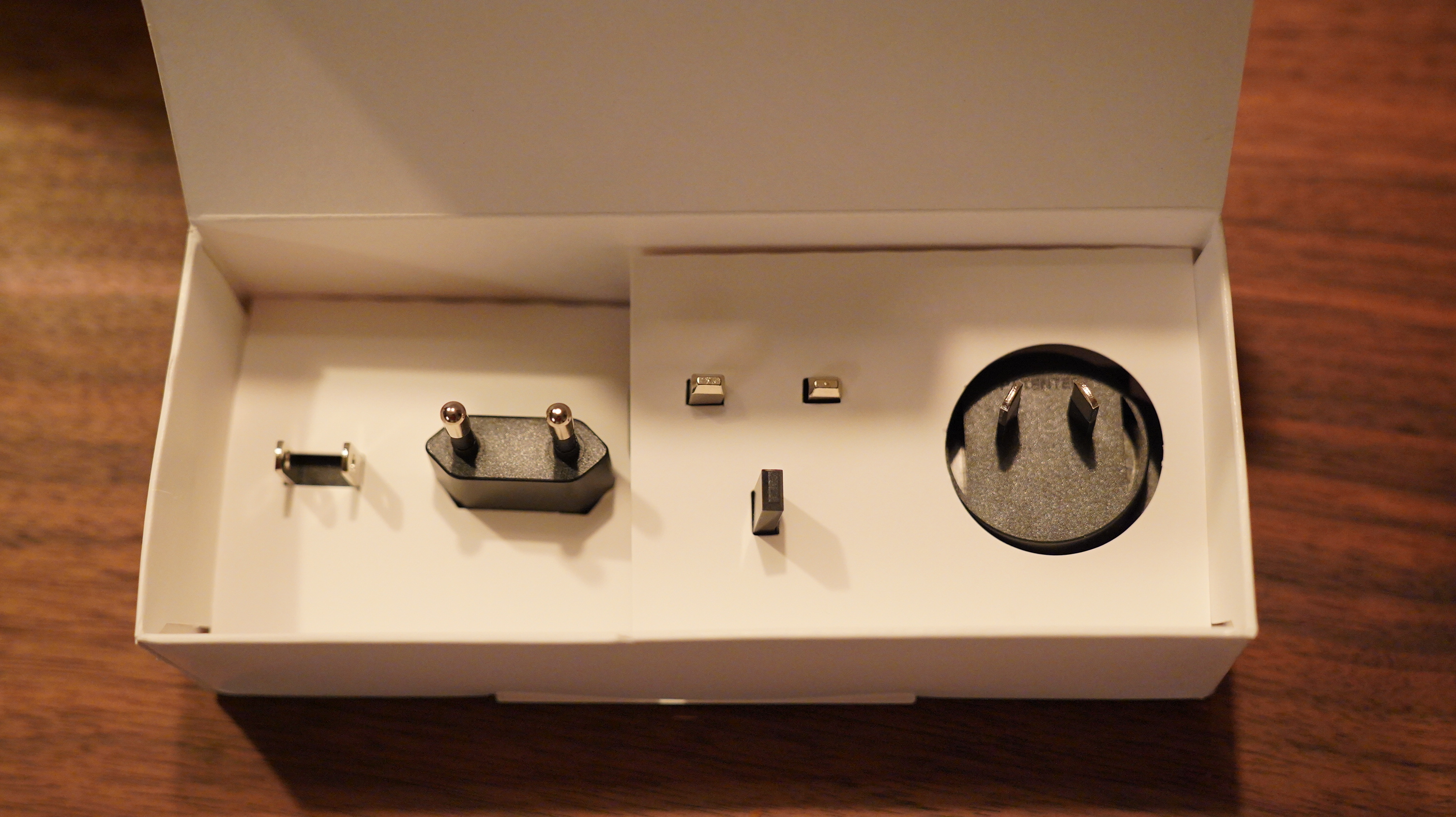 어댑터와 전원 케이블 그리고 유니버셜 콘센트 헤드는 하단에 위치하고 있네요.