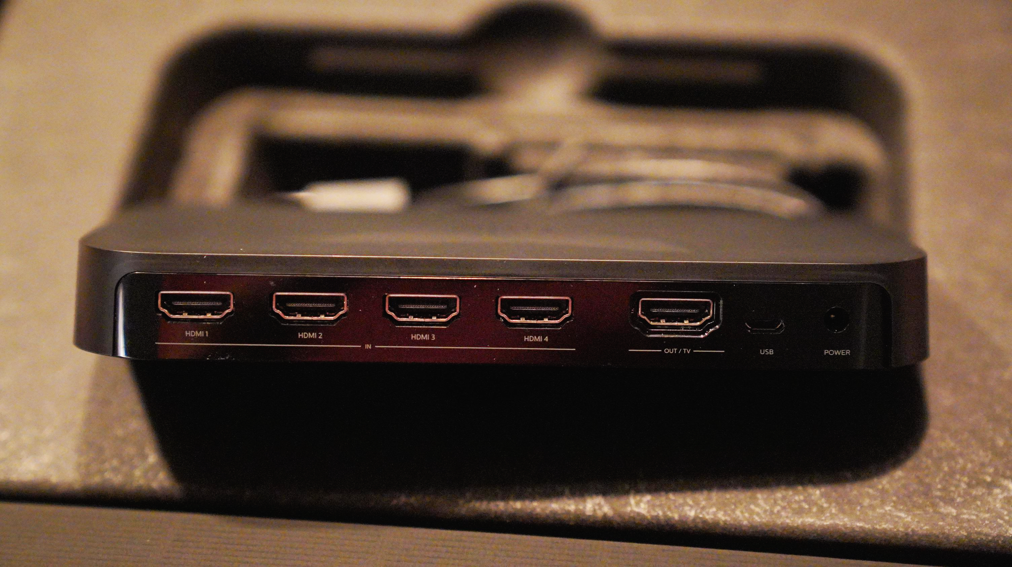 제품은 단순합니다. 전면에는 전원 버튼과 LED 인디케이터가 그리고 후면에는 4개의 HDMI input포트, 1개의 HDMI Output 포트 그리고 Micro USB 포트와 전원 포트가 자리하고 있습니다.