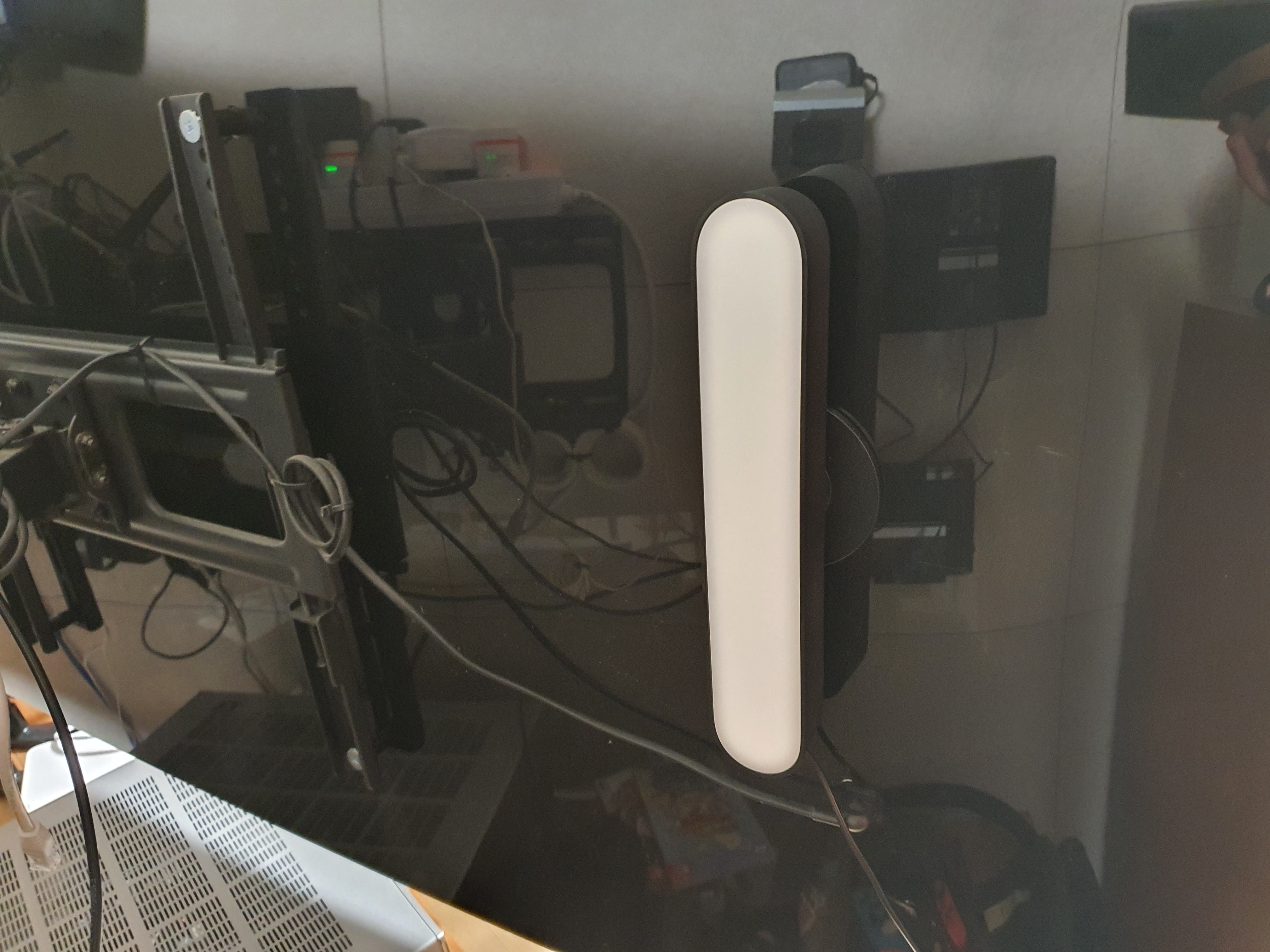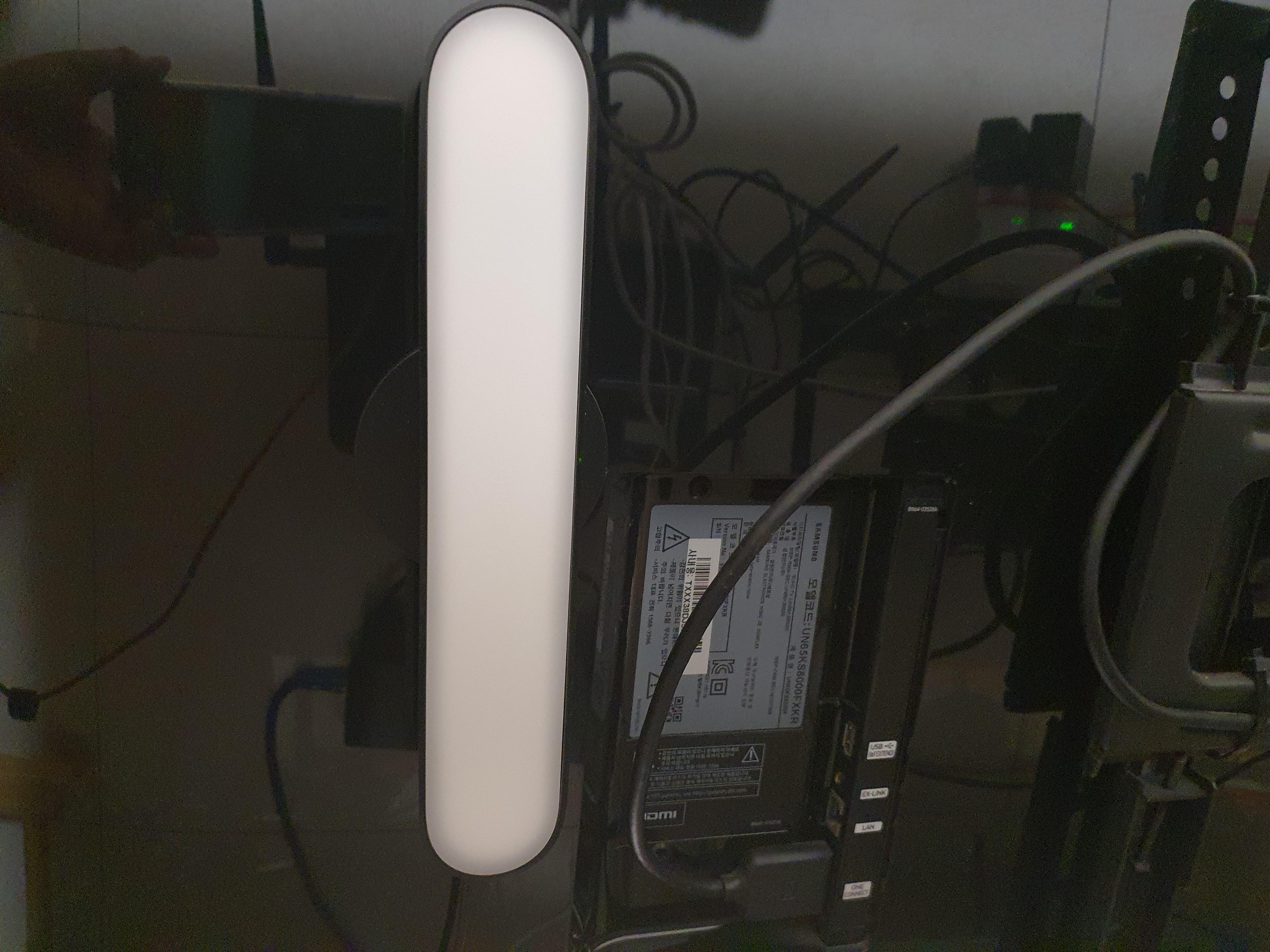 저희집은 TV가 벽걸이 시공 되어 있기 때문에 TV뒤에 붙이기 위해서 부착용 스탠드를 이용 하였습니다. 제 생각에는 PC의 환경에서는 스탠드 설치가 나은것 같고 TV의 환경에서는 벽 부착용 브라켓을 사용하는게 좋은 것 같습니다. 그 이유가 PC의 환경에서는 무조건 책상이 있기도 하고 모니터가 아무리 커도 눈과 거리가 가깝기 때문에 광을 넓게 퍼지게 하는 것 보다는 각도를 사람쪽으로 45도 틀어서 좁게 세팅하는 것이 몰입도를 높힐 것 같고, TV는 요새 벽걸이 시공이 많고, TV서랍장이 없는 집이 많기도 하며, 최소 1~2미터 떨어져서 TV를 감상하기 때문에 TV 뒤에 붙여서 빛이 벽을 반사하면서 넓게 퍼지게 하는 세팅이 좀 더 몰입도를 배가 시키기 때문입니다.