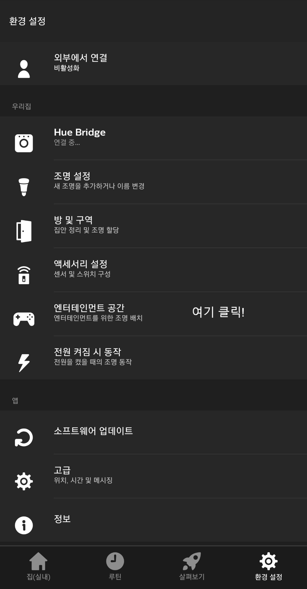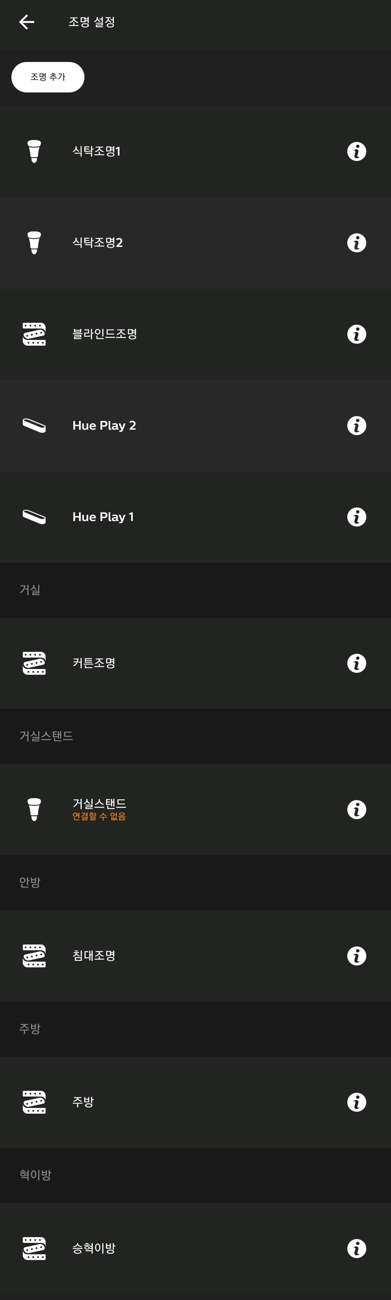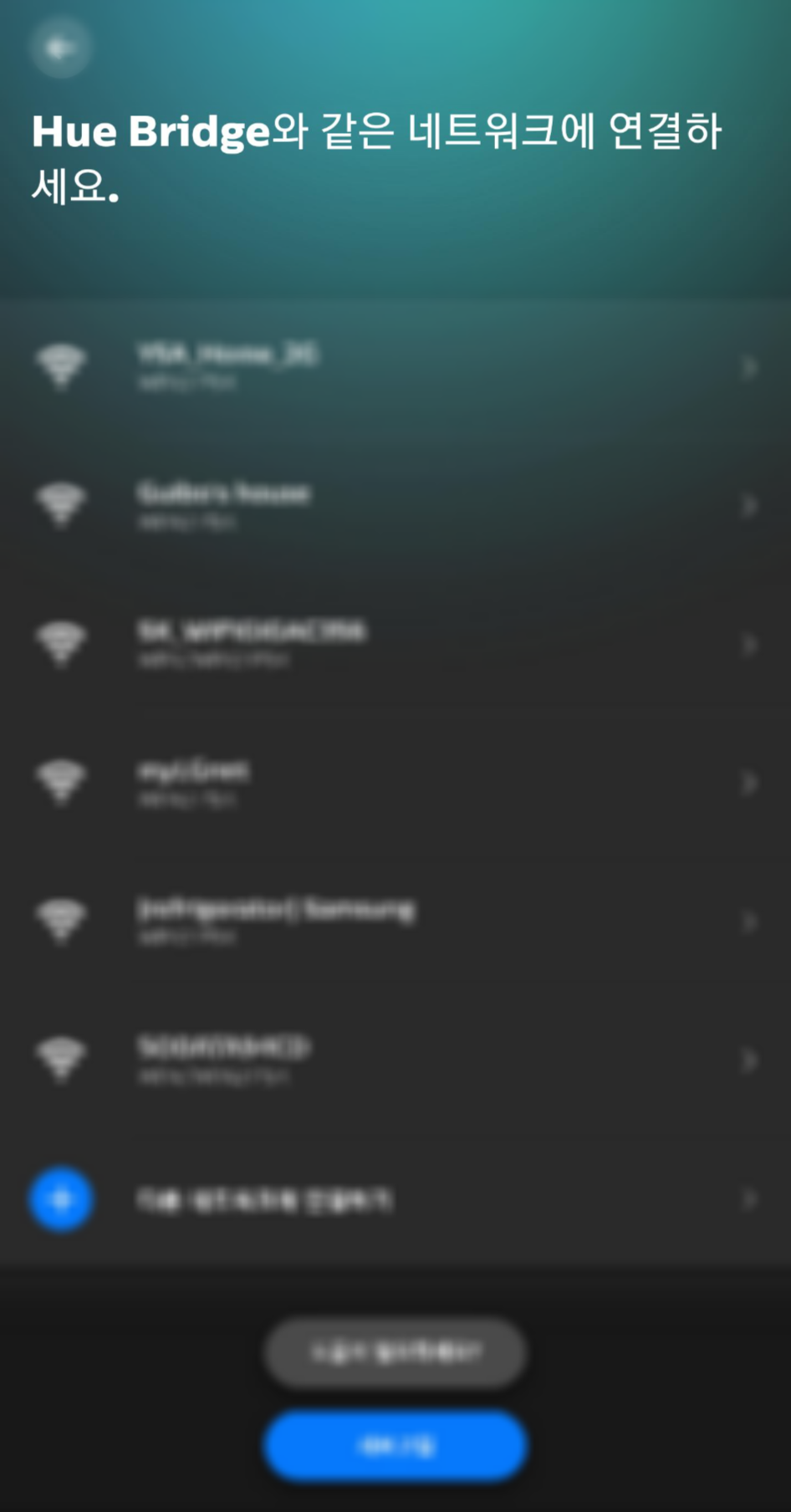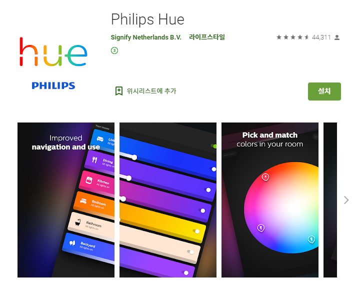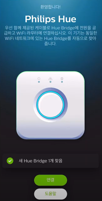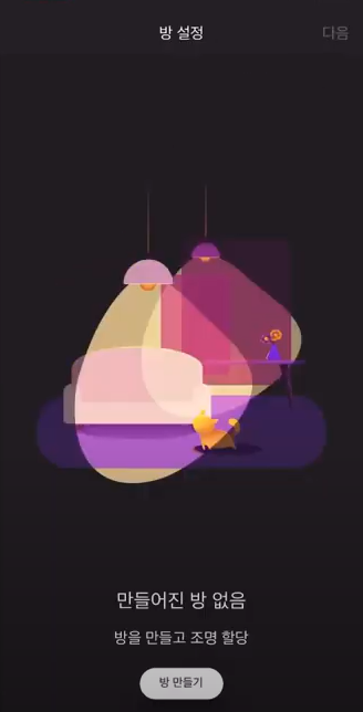 이후 앱에서 가이드 하는대로 설치를 완료하기만 하면 됩니다. 브릿지를 연결하시고 방 만들기를 통해 휴 조명들이 설치되어 있는 방을 하나 생성해 준 후, 가지고 있는 조명들을 체크하여 선택해 주면 설치는 완료가 됩니다.