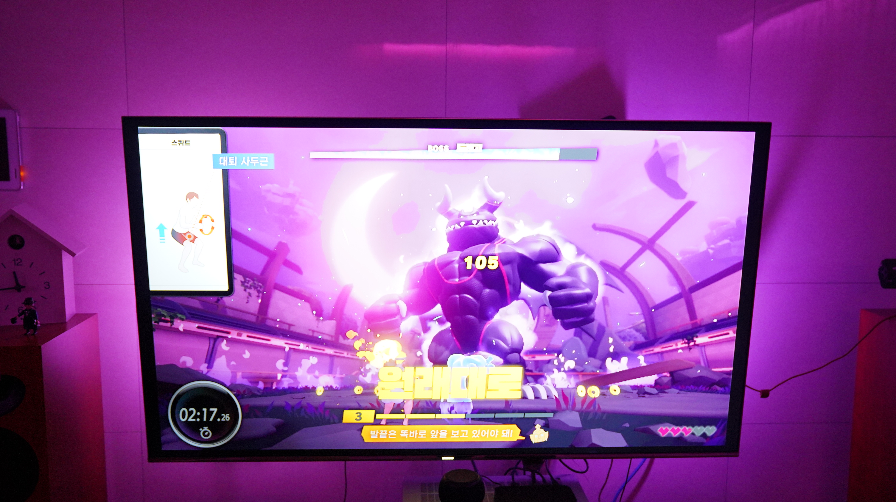 저희 와이프가 임산부라 운동을 꼭 해야 해서 운동 게임 사줬는데도 원체 싫어해서 잘 안하더라구요. 근데 이 싱크박스와 조명연동을 해 주니 요새 재밋다고 아주 열심히 합니다.