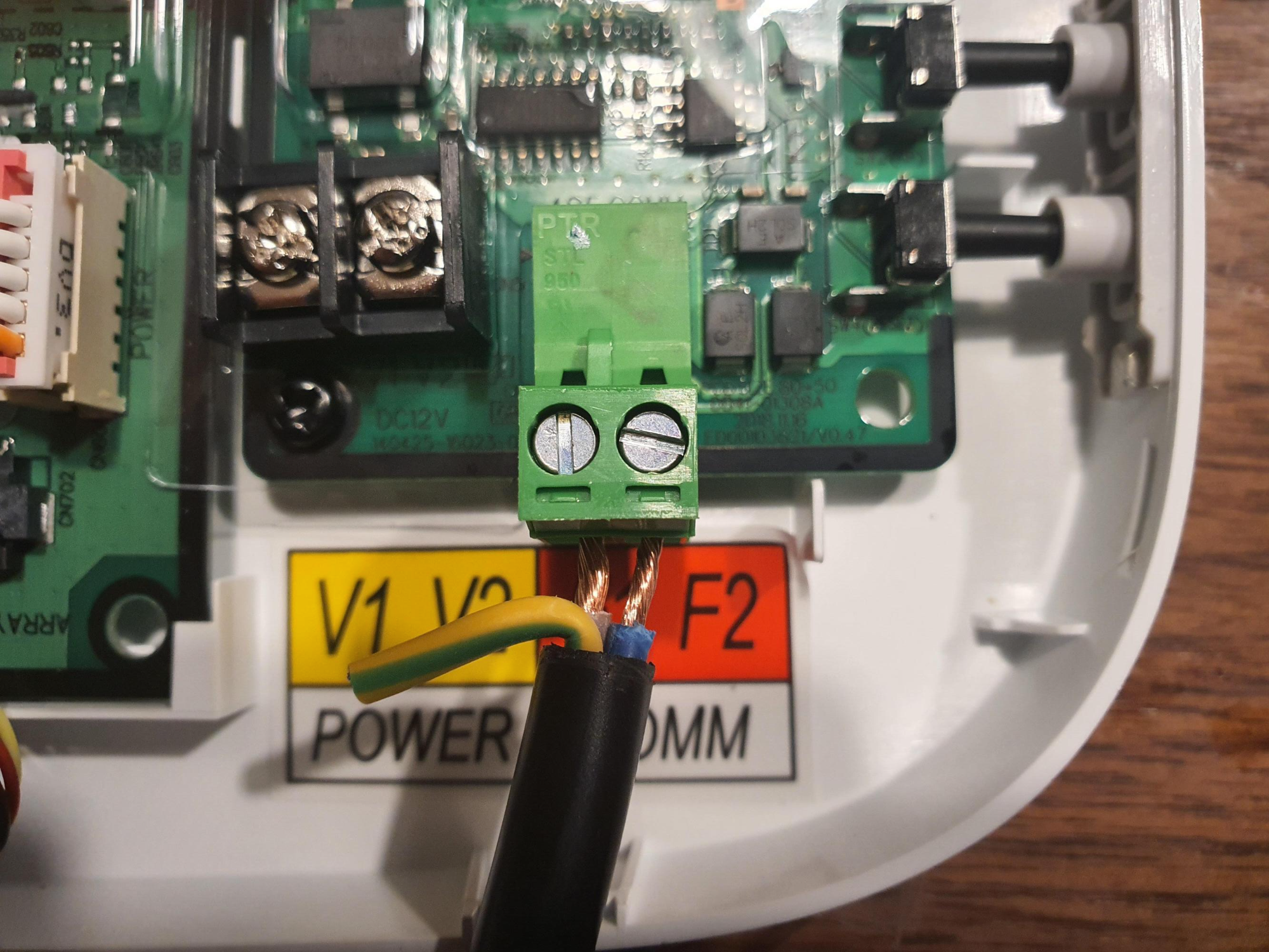 결선은 우선 F1,F2는 이렇게 피복만 벗겨 넣고 나사로 조여주면 고정이 됩니다. (옆에 삐죽 나온 선은 무시하세요)