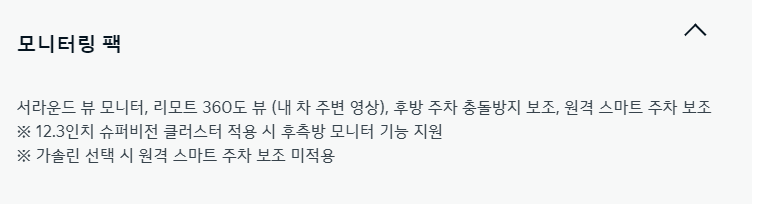 모니터링 팩 (70만원) 옵션 추가합니다. 요즘 나오는 차에 서라운드뷰 옵션 없으면 또 정말 아쉽기 때문입니다. 이렇게 해서 여기까지 3,263만원의 가격으로 이 차량 구매를 추천드립니다.