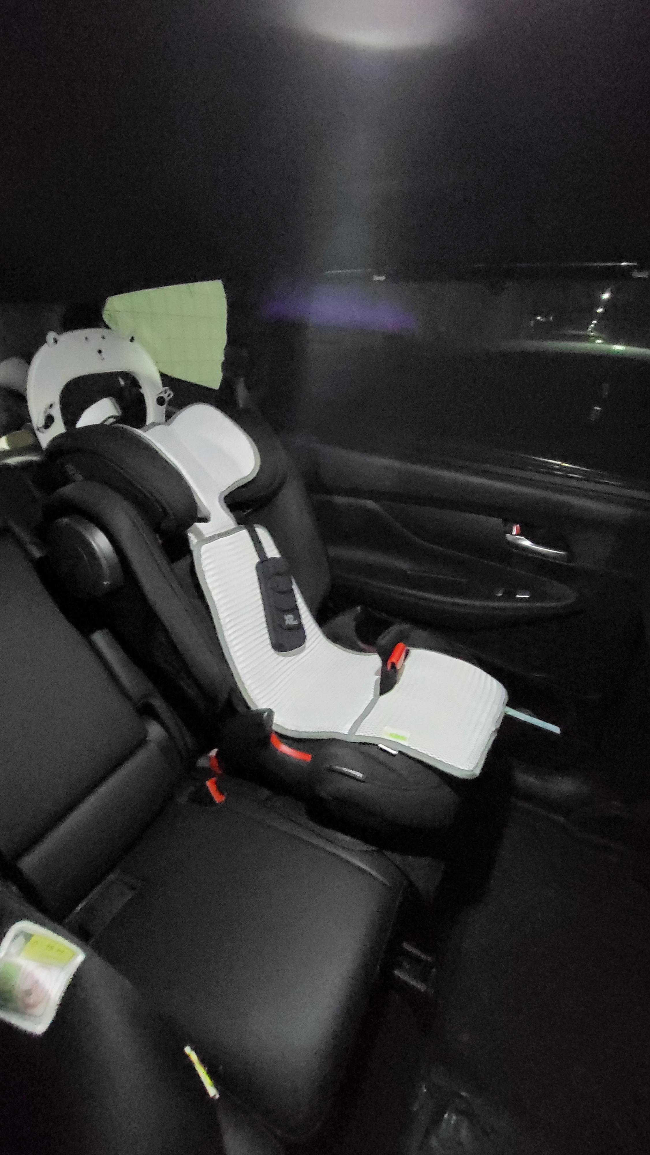 헤드레스트 부분도 상당히 두툼하네요. 사실 여기에 머리가 다 들어와야 사용할 수 있습니다. 신장이 100~130cm가 되어야 되는데요. 저희 아이도 아직 조금 모자라긴 한데 아이들이 너무 빨리 크기도 하고 차량을 많이 타는 일이 없기 때문에 그냥 한번에 주니어로 온 케이스 입니다. 아이가 차량을 많이 타거나, 중장거리를 많이 다니면 안전을 위해서 토들러를 한번 거치시는 것을 추천해 드립니다.