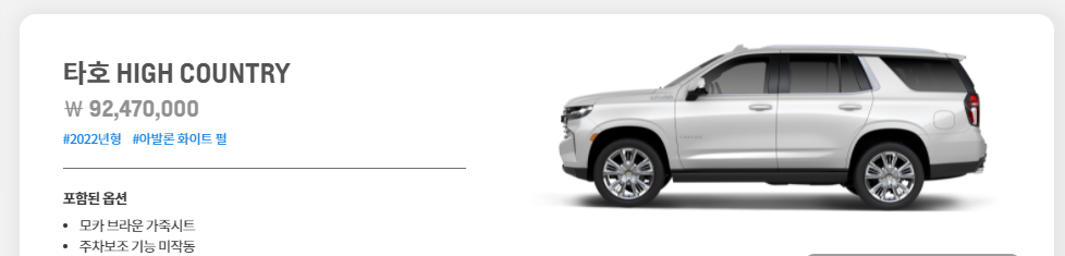 미국 영화에 나오면 FBI, CIA가 타는 차량이죠. 오늘은 크기만으로도 엄청난 포스를 자랑하는 쉐보레 타호 입니다.