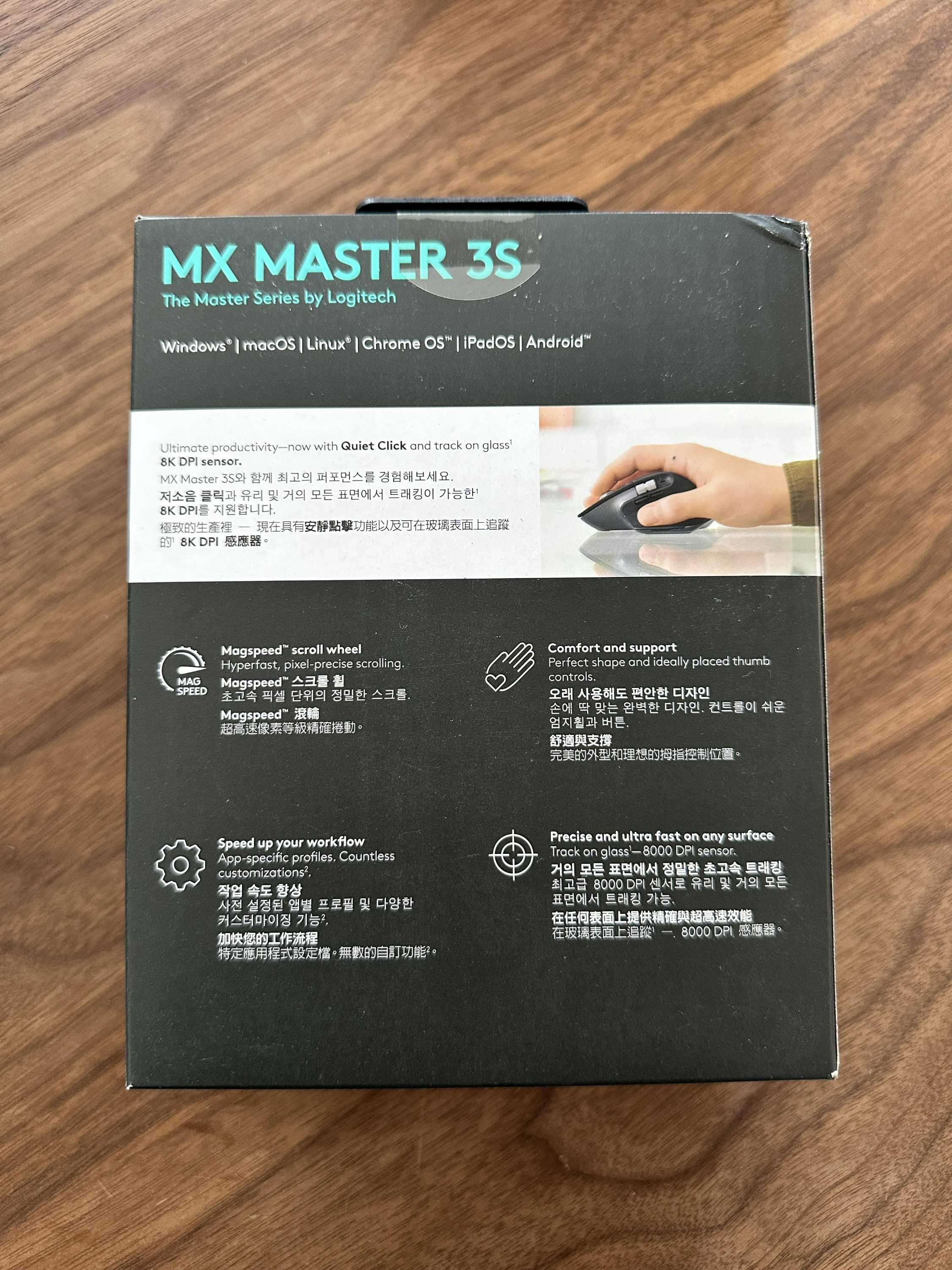 로지텍은 패키징에 애플보다 신경쓰는 것으로 유명합니다. 적절히 가격대 있는 소재에 바니시 처리된 제품 전면 이미지까지 너무 마음에 듭니다.