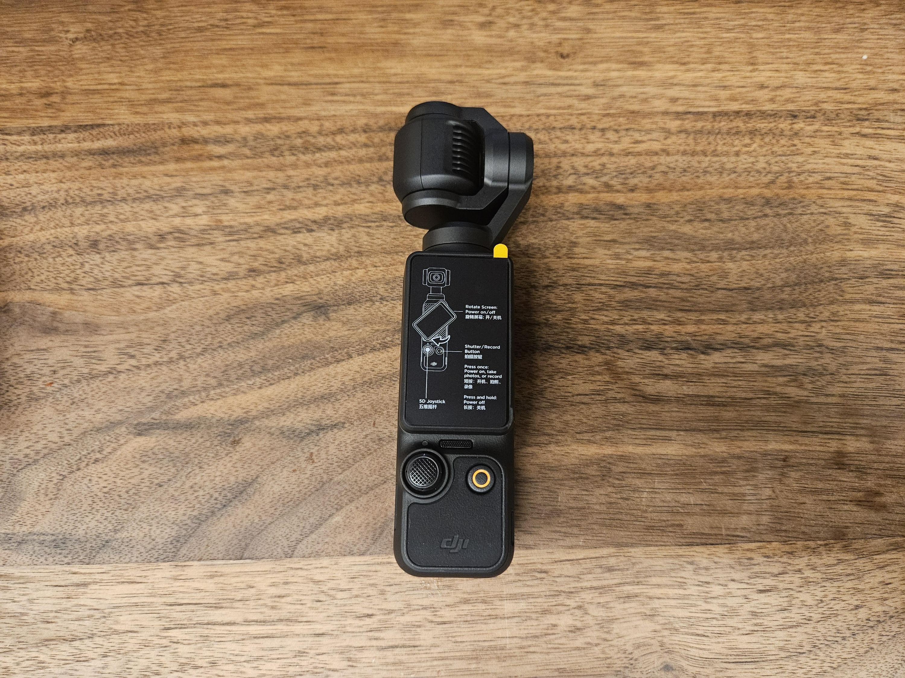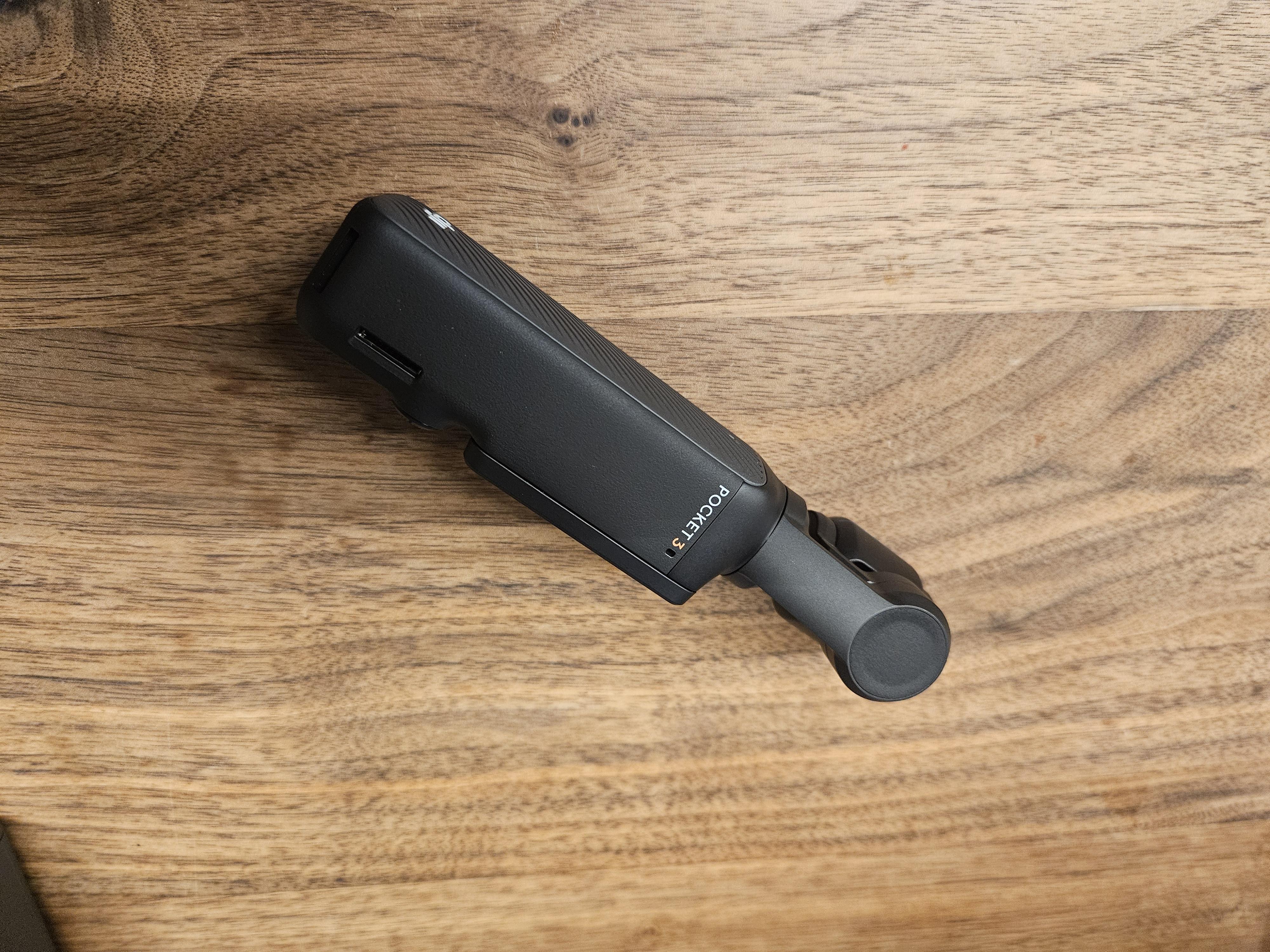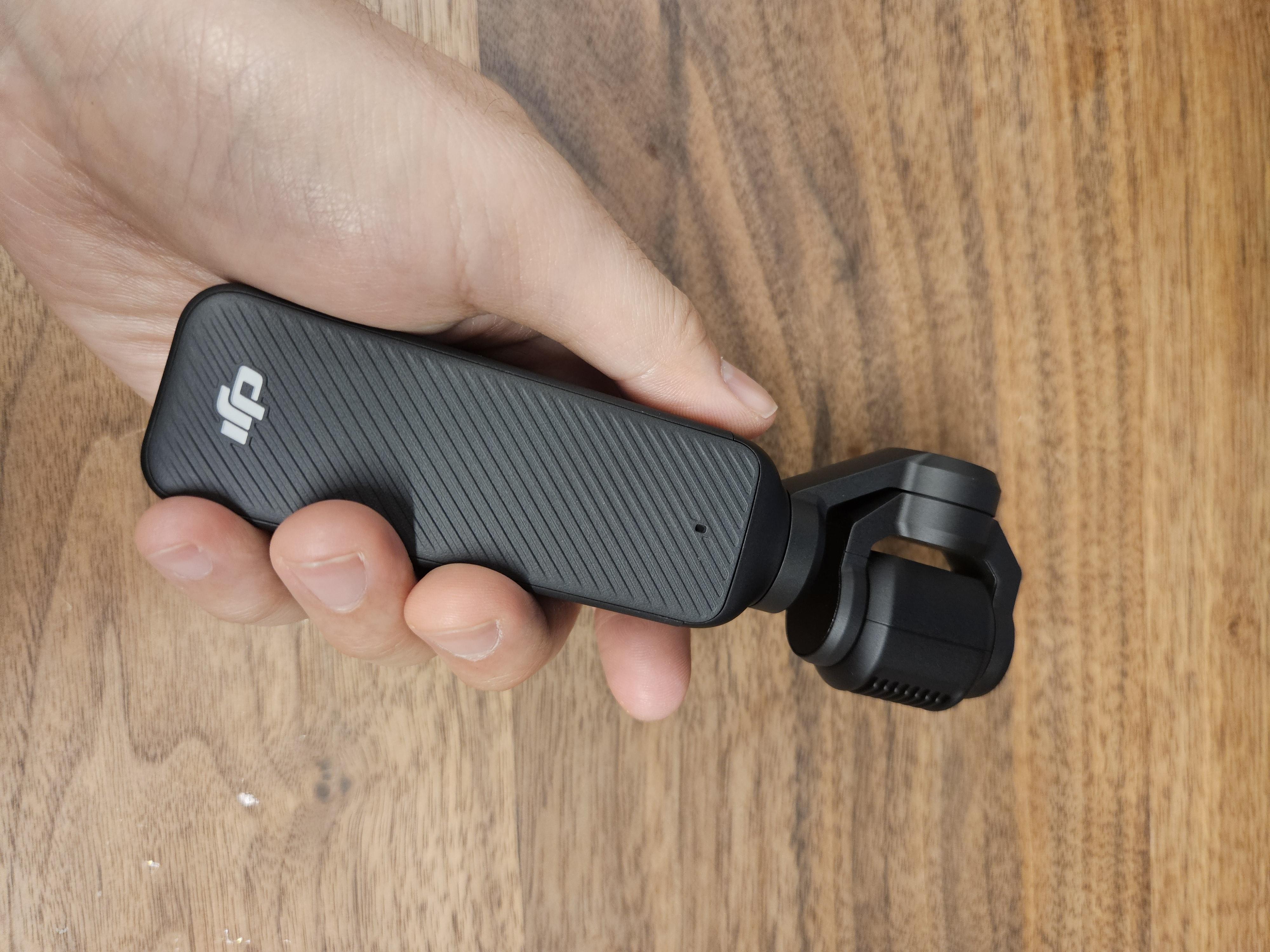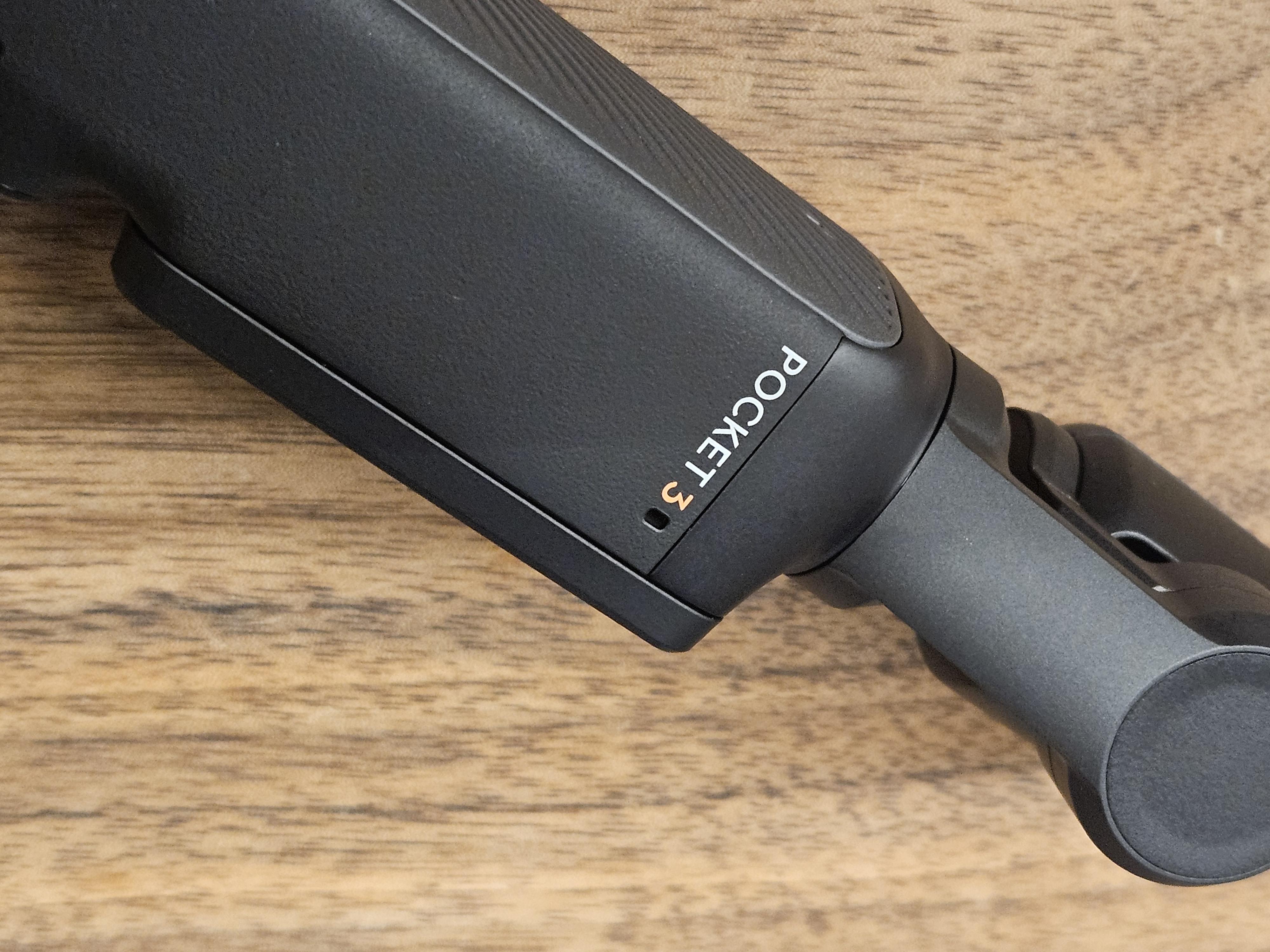 오즈모 포켓의 각인. 멋집니다. 손이 닿는 부분은 미끄럼 방지의 러버 처리가 되어 있습니다.