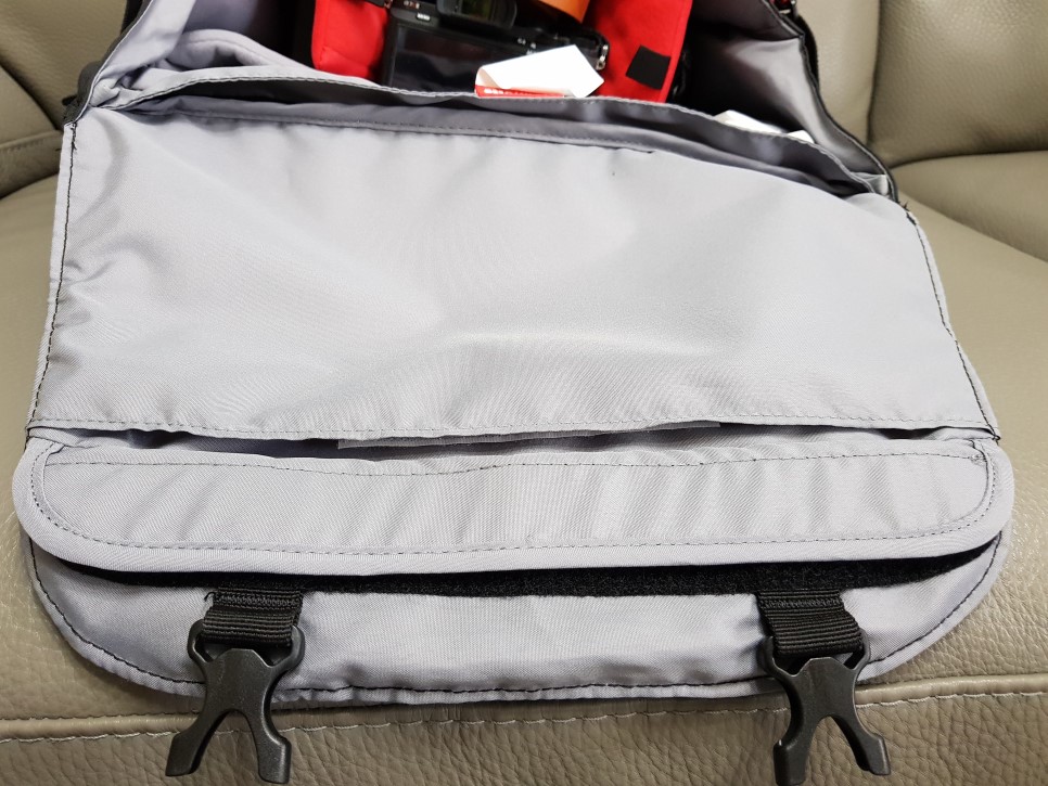 역시 카메라 백의 가장 중요한 부분은 수납 이겠죠? 메신저 백이지만 여러가지 방식의 수납방식을 보여 줍니다.