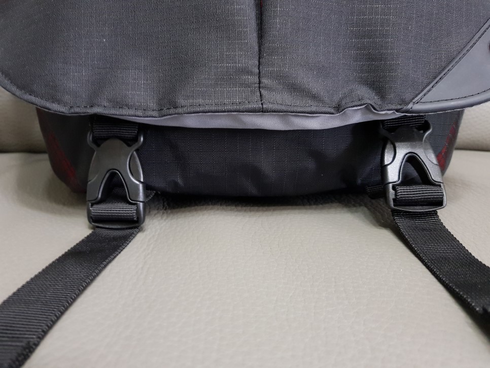 바로 이렇게 벨크로가 있는 것을 확인할 수 있습니다. 벨크로 방식으로 한번 오픈이 가능하고, 버클로 더 확실하게 가방 잠금을 할 수 있다는 이야기!