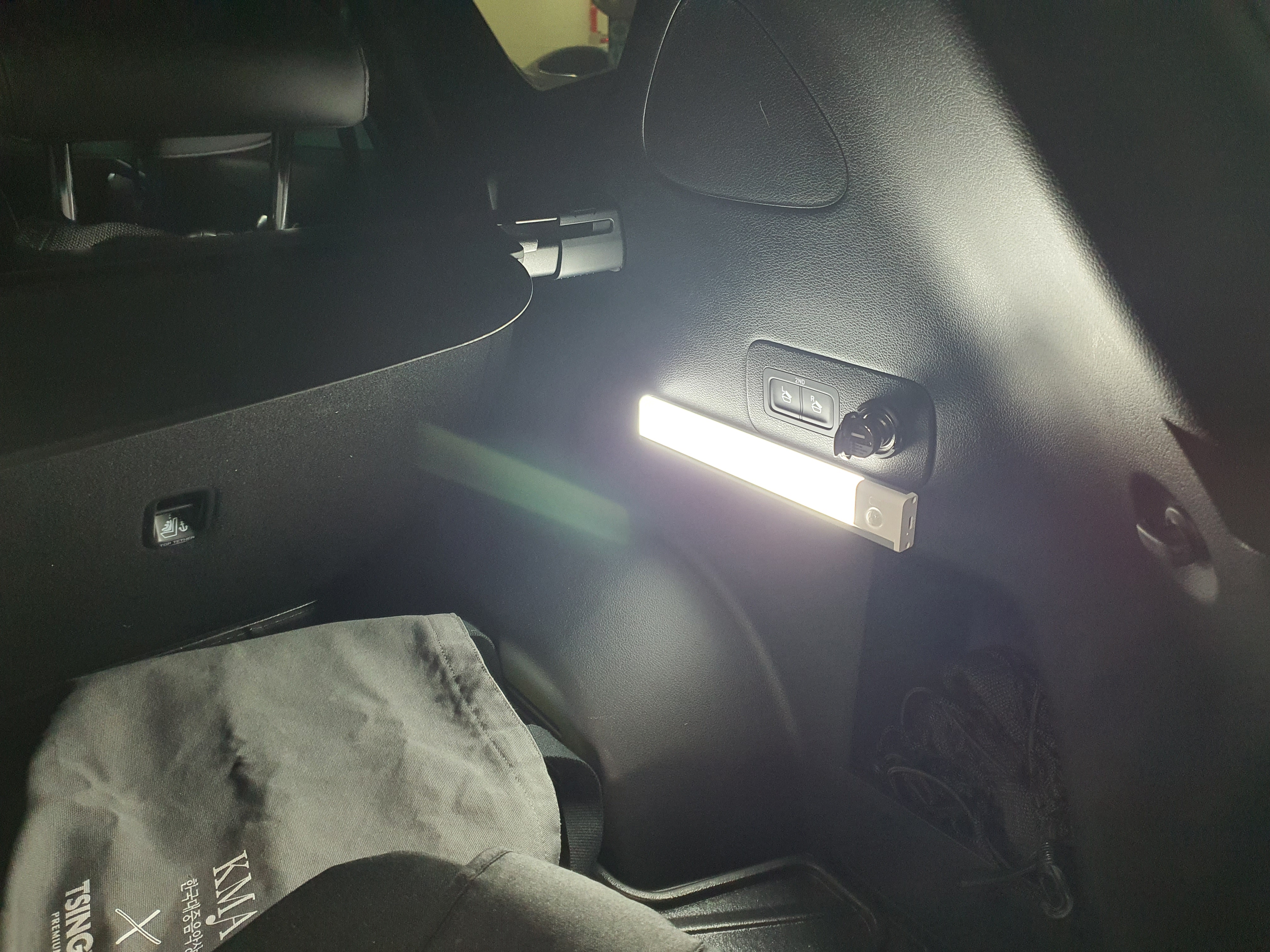 러기지 스크린을 닫아도 이렇게 하단이 잘 보이죠. 사실 위에 있는 트렁크등의 빛으로 보려면 늘 러기지스크린을 해제해야 했었거든요. 이제 그럴 필요가 없어졌습니다.